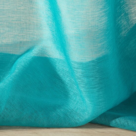 Die geradlinige und anmutige Fensterdekoration ELPIDIA in einem intensiven Türkiston ist aus halbtransparentem, mattem Ethamin genäht, das das Fenster sehr natürlich dekoriert. Diese Dekoration verbindet lässige Lässigkeit mit urbaner Eleganz. Die Dekoration kann sowohl als leichter Vorhang als auch als dichter, sonnenschützender Vorhang verwendet werden. Der halbtransparente, dicht gewebte Stoff schirmt das Fenster vor übermäßiger Sonneneinstrahlung ab, so dass wir die Verwendung als Vorhang vor allem in sonnigen Räumen empfehlen.